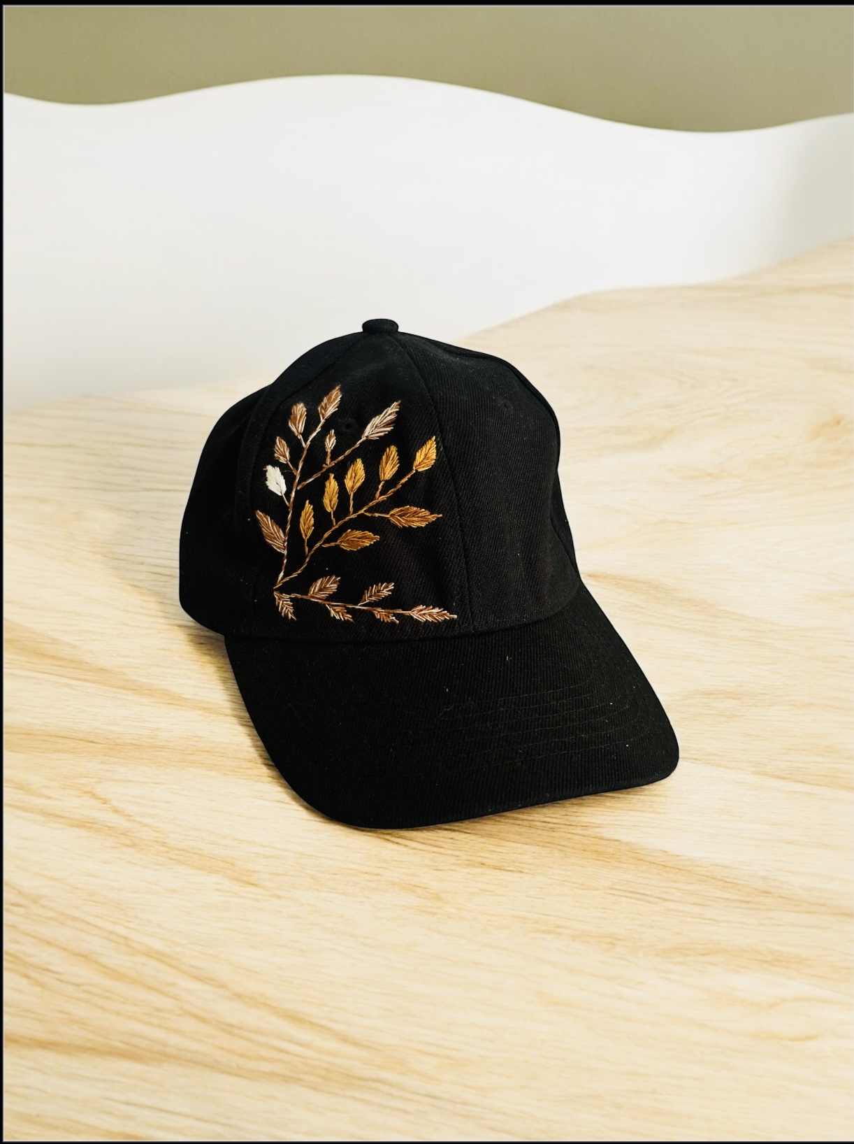 Stylish embroidered hat with intricate hand stitching, perfect for adding a unique, handcrafted touch to any outfit.